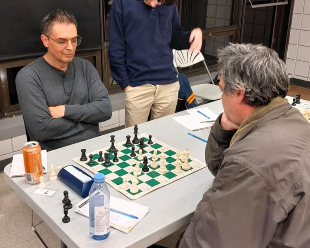 Pierre Arcand vs Laurent Bergeron Collin : j’ai trouvé cette partie fort intéressante. Pierre a pris les devants assez rapidement dans la partie grâce à une jolie tactique :
