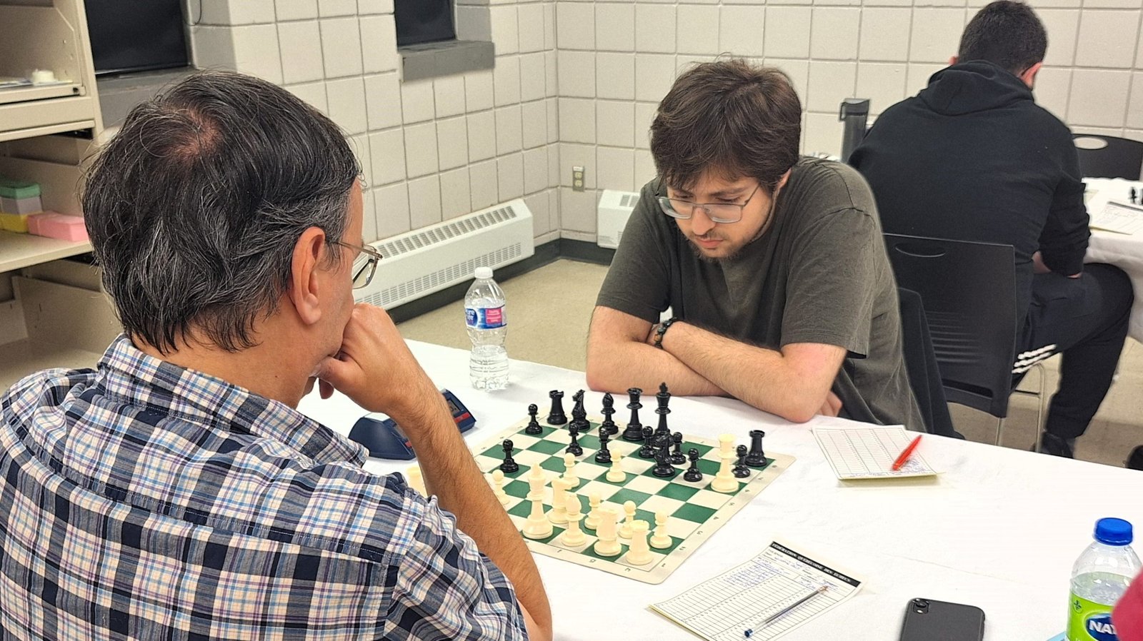 Joel Lecorre vs André Bastien : Quel duel que se sont livrés André et Joel! Pendant un long moment dans la partie, Joel a mis de la pression sur le roque de son adversaire. Il a même sacrifié une qualité pour augmenter la pression. André est un très bon défenseur et il a bien manœuvré pour solidifier sa forteresse. Il a réussi à ouvrir une colonne et il a pu obtenir du contre-jeu. J’ai remarqué qu’il y a eu plusieurs erreurs de part et d’autre en fin de partie. Clairement, la fatigue a été un enjeu et ça a plus affecté mon ami Joel. Tout de même, il faut souligner le beau retour d’André qui vengeait sa plus récente défaite.