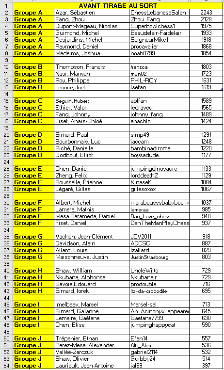 Voici la liste des joueurs inscrits aux parties lentes organisées par le CEH. Pour vous joindre à ce tournoi, n’hésitez pas à écrire à l’adresse courriel suivante: info@cerclechecshull.com.